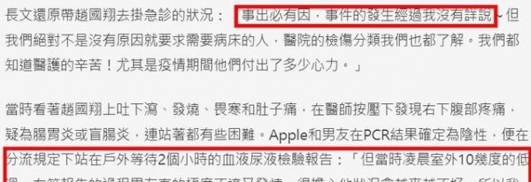 眼见着自己翻车,Apple又赶紧发了一条长文找补,坚称事出必有因,强调自己不是无缘无故就要睡空病床,她之所以提出要求,是因为看到男友太难受了,连站着都困难,当时室温只有十几度,她担心男友状况越来越不好,所以才询问是否可以躺一下急诊病床。