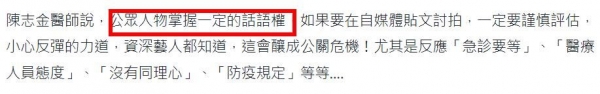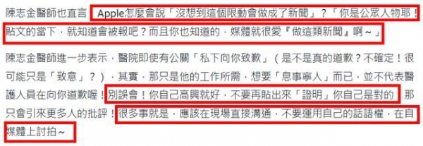 医师也是很懂这些小明星的心态了,炮轰起来直戳重点毫不客气,看到Apple表示自己没想到发文会被报道,他嘲讽回击:你是公众人物耶,发文的当下,就知道会被报吧?而且你也知道的,媒体就很爱做"这类新闻啊"!