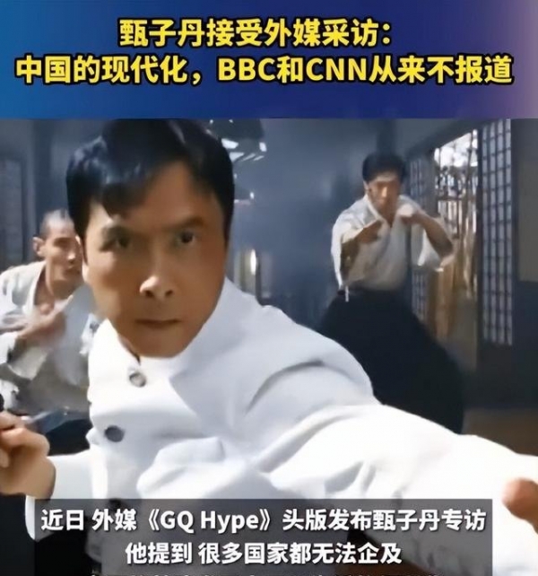 甄子丹在美国资源很好,最近他和基努·里维斯主演电影《疾速追杀4》,甄子丹专门接受了媒体采访。"我去过世界上很多国家,不管是高速公路、建筑的发展,还是生活方式的便利,那些国家和中国比都差远了。""但BBC,CNN,他们从来不报道这些。"