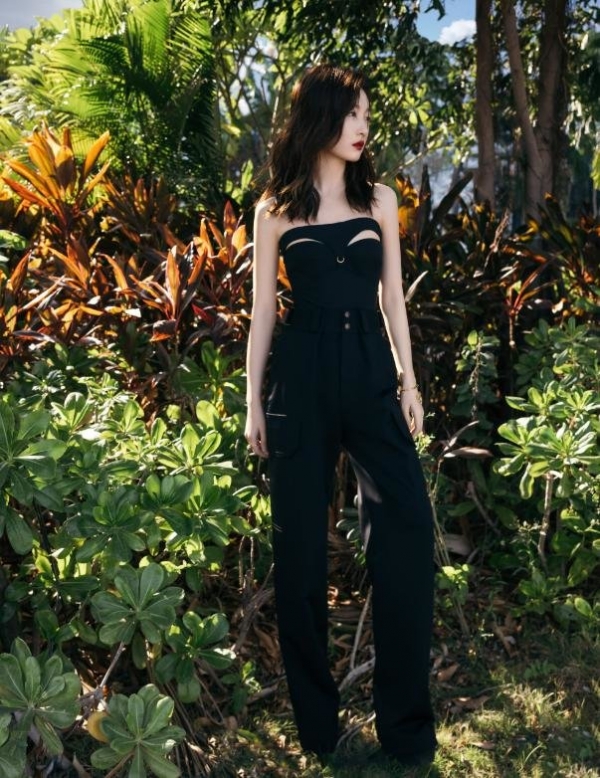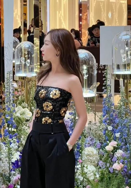 在金鸡奖开幕式上,她一身黑色抹胸套装,胸前做了挖空设计,小细节十分性感,再搭配上阔腿长裤,又酷又飒。