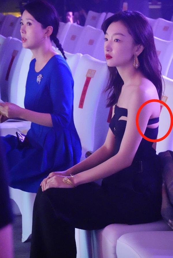 媒体曝光的金鸡奖现场图中,她端坐在椅子上,后背都被衣服给勒出肉了,原本这一部分的挖空设计是为了秀身材,谁能想到她的肉却溢出来了。