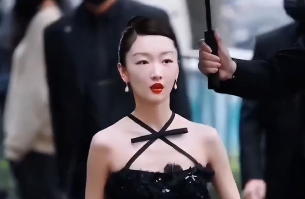 而这套造型最失败的不是衣服,而是妆容,头发梳得一丝不苟,脸上化着浓艳的妆容,非常不适合周冬雨。