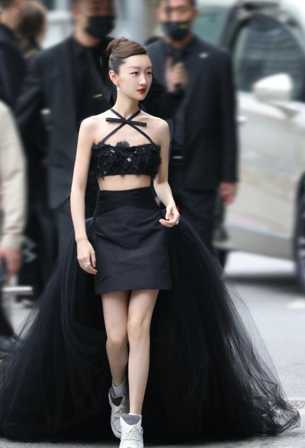 除了抹胸不合适之外,下半身的大裙摆也很不适合她,她个子本来就不高,过大的黑纱裙摆反而会压她的身高和气势,显得很累赘。
