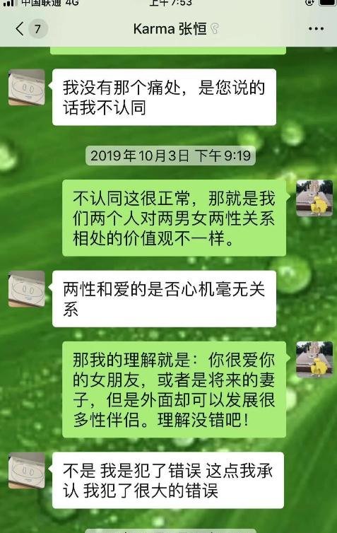 首先,张恒在婚内出轨!据说俩人有了孩子三个月的时候,张恒就多次出轨,而且屡教不改!认为张恒之前所说的是真爱而且身体不好是谎言,在欺骗大众!