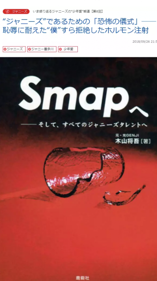 练习生木山将吾在著作中写道,喜多川会为男孩们注射雌性激素,以延缓男孩的性征发育,保持美少年的幼态感,满足他的性偏好。