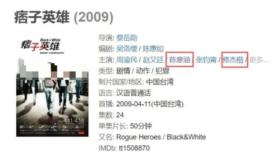 2009年,陈意涵和修杰楷因为合作电视剧《痞子英雄》成为好朋友↓