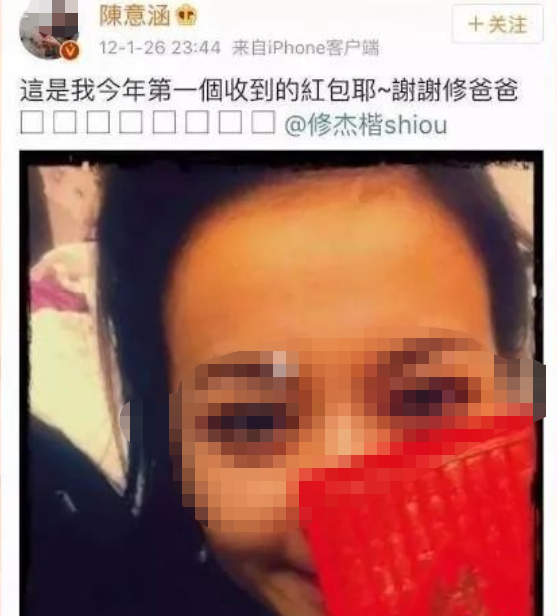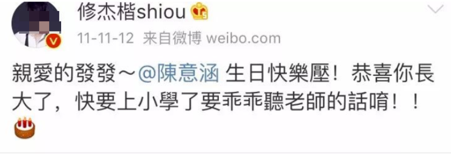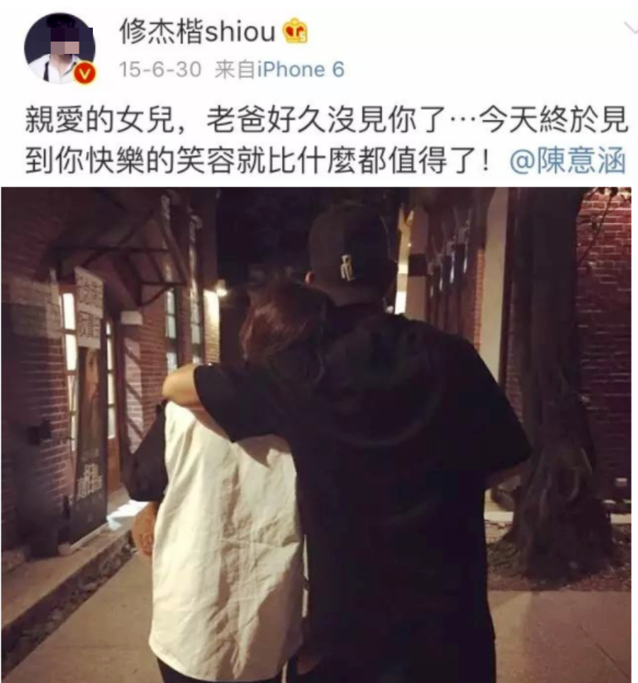 陈意涵其实比修杰楷还大一岁,但她喊修杰楷爸爸↓