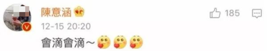 那是2017年12月15日,一个普通的周一,废姐一边吃饭,一边玩手机,看到陈意涵发了一条新动态。