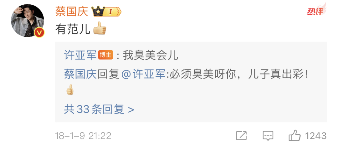 老同学蔡国庆评论:有范儿、出彩⬇️