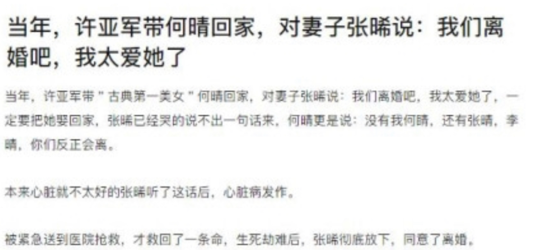 起因是1995年,许亚军接拍《风荷怨》,与何晴相识。