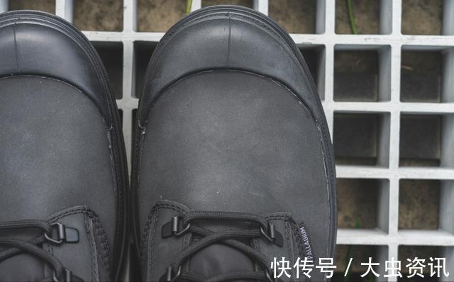 为了提升耐用性,前掌材质是由米其林轮胎橡胶制成的防刮鞋面,另外PALLADIUM帕拉丁也保留原有的橡胶鞋头,以及侧边的品牌LOGO作为前掌细节点缀。