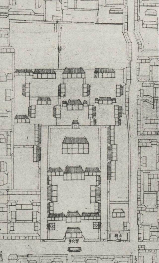 这是乾隆时期智化寺的规模,现在北边和东西两边已经不存在了