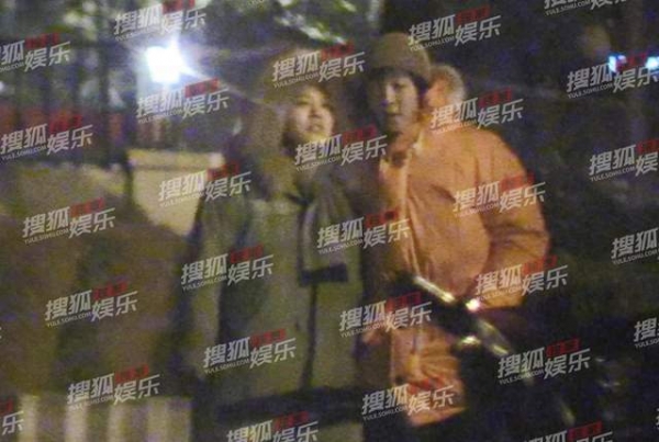 夜晚天气寒冷,两人戴着帽子,将自己包裹得很严实。宽大的棉服显得马思纯身材有些臃肿,她经常抬起头和男友讲话,对方则是温柔地低头倾听。