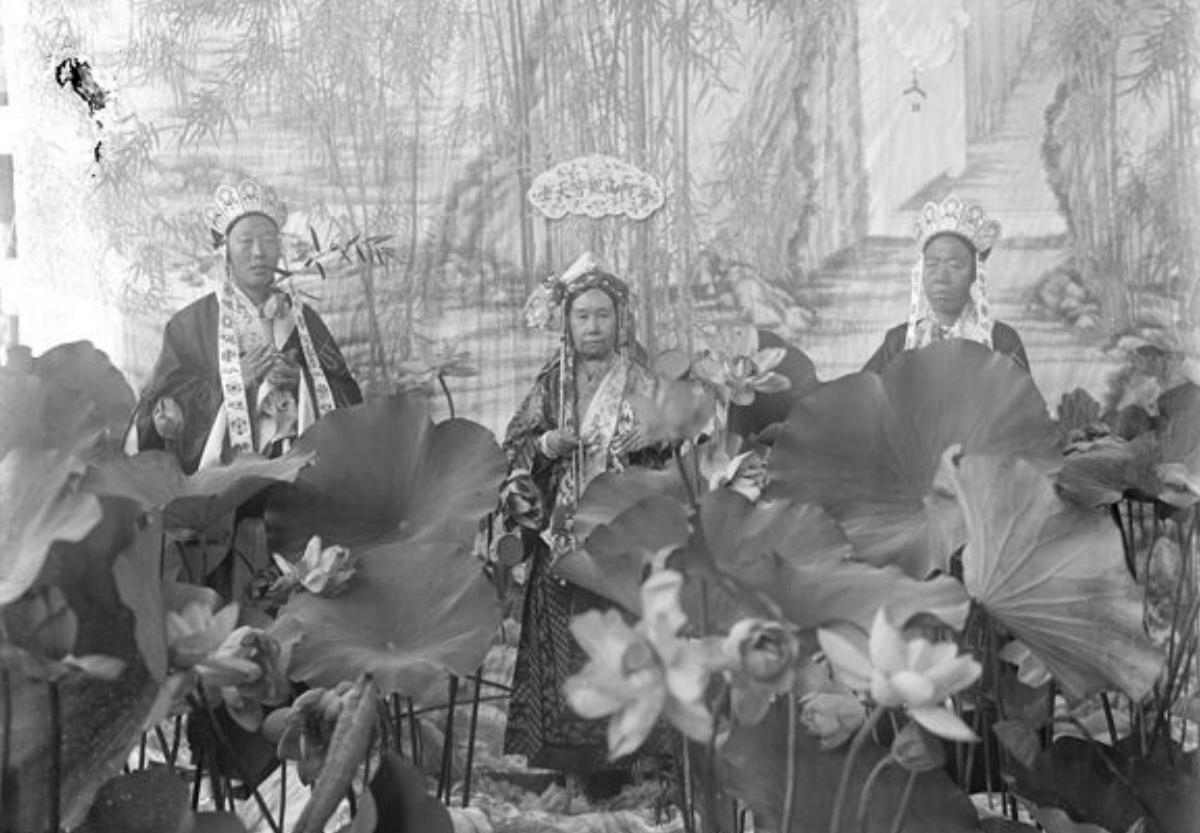 慈禧太后身边最受宠宦官李莲英真实照片,李莲英真人长相很帅气!图为慈禧太后和李莲英在扮演观音和善财童子,坐在中间扮演观音的就是慈禧太后,右边的则是大太监李莲英。