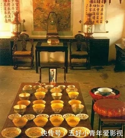 皇帝的餐具也是有讲究的,以金银器为主,即使是陶瓷制品,也是上好的质地。其中,金质碗、碟、盘等器皿最能显示皇家的气派,故而皇家都喜欢"金饭碗儿"。如果改用其他质地的器皿盛饭菜,会惹主子生气的。