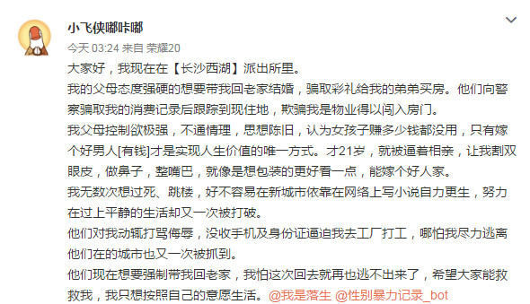 记者多方核实,一名知情人士介绍,该博主发帖内容中多处内容并不是实情。“很多地方都夸大了,她是和父母有了一点矛盾,但并不是逼婚,弟弟也没有。”