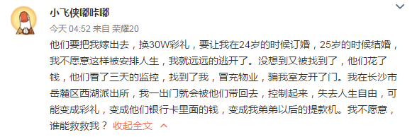 而之所以如此逼迫她,是因为该博主有一个弟弟,将来需要用博主出嫁的彩礼补贴弟弟。