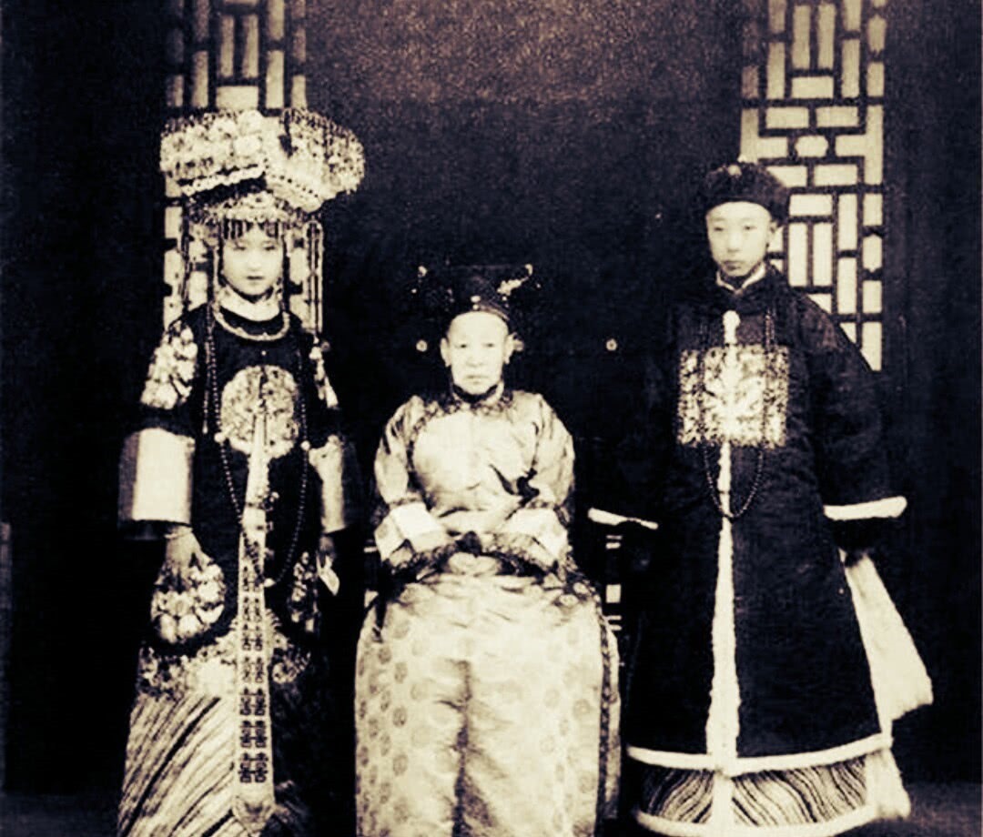 清末端康太妃和一对新婚夫妻,这对夫妻就是溥仪的弟弟溥杰和太妃的侄女唐怡莹。不过唐怡莹生性放荡,与溥杰貌合神离,还与张学良有过一段往事。少帅晚年直言差点让这个女人毁了。