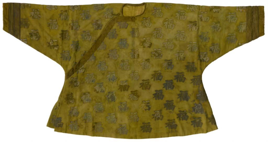 从外往里依次是:龙袍、团寿长袍、福字夹衣