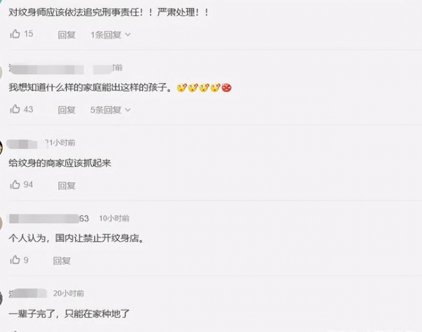 “小孩子不懂事,纹身师纯粹为了骗钱,应该追究相应的责任。”