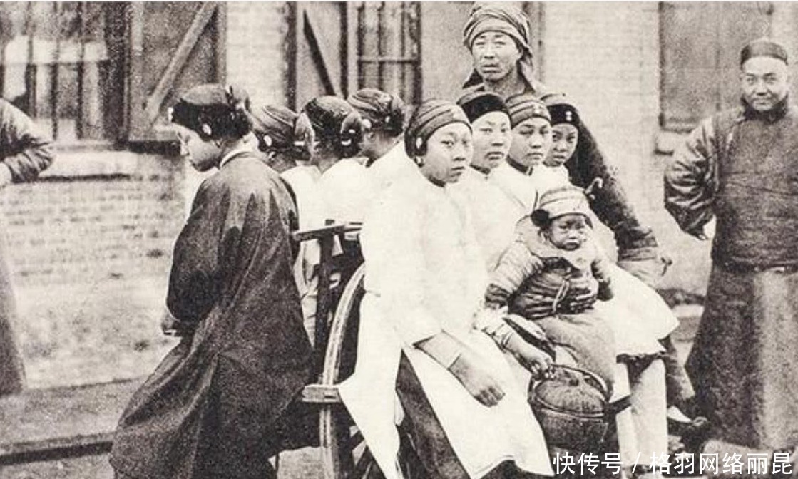 这是晚清年间老百姓出门常坐的独轮车,据悉这张照片拍摄于上海,当时这辆独轮车上不但坐着8名妇女,而且其中一位妇女还抱着一个孩童,其实一般的两轮车坐两个人已经是足以,而这张老照片上坐了九个人,实在是为难了推车的车夫,可见这晚清的穷人钱并不好挣。