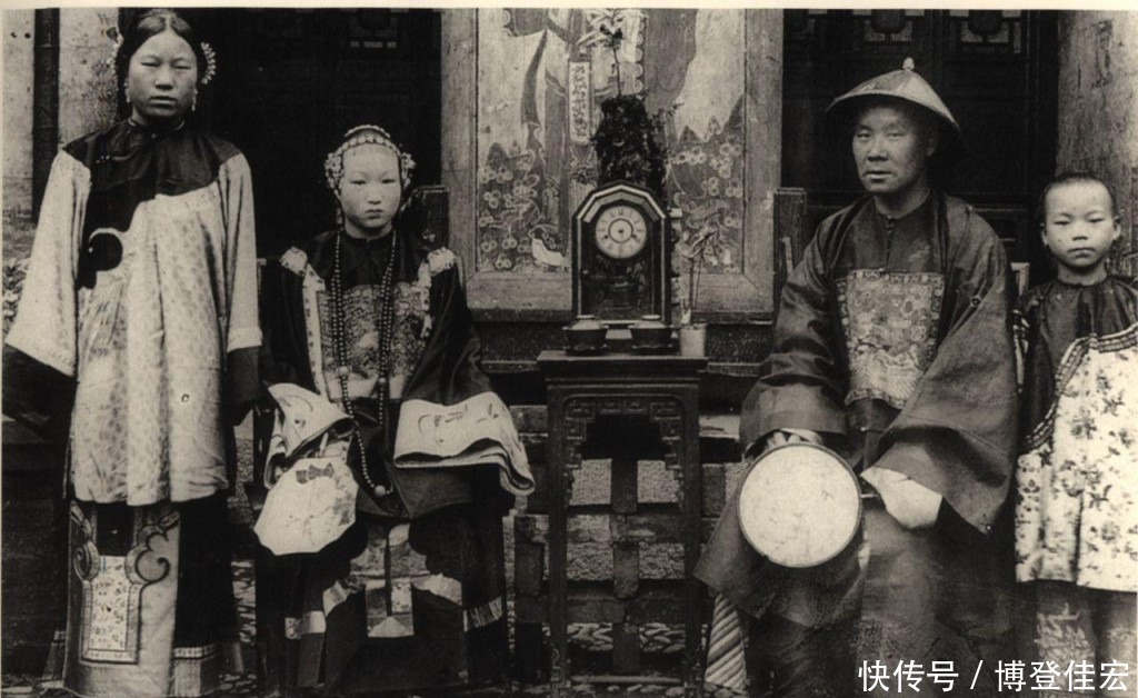 这张是清朝一官员的全家福,从图中我们可以看出,正室穿的比小妾华丽的多。所以在古代,阶级制度非常明显,在家庭里面也是显而易见的。