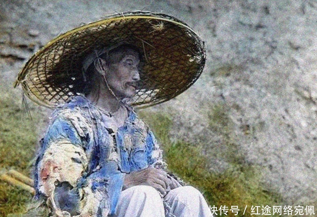清朝穷人老照片,一位衣服非常破烂的老人,被贫苦生活折磨的已经不成样子,眼神中的绝望令人看了很是心塞,没想到清朝人生活的这么苦,连件完好的衣服都没有,更别提新衣服了!