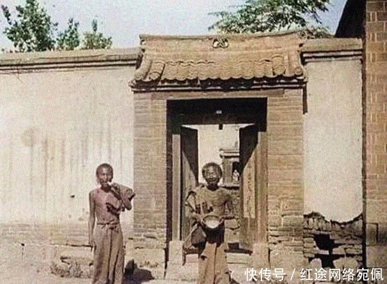 清朝穷人老照片,两位很瘦的乞丐刚从人家家里乞讨出来,看样子这家人给了些吃的,还算运气不错,他们看上去已经是很长时间没有好好睡觉休息了,精神状况不容乐观,实在是太可怜了!