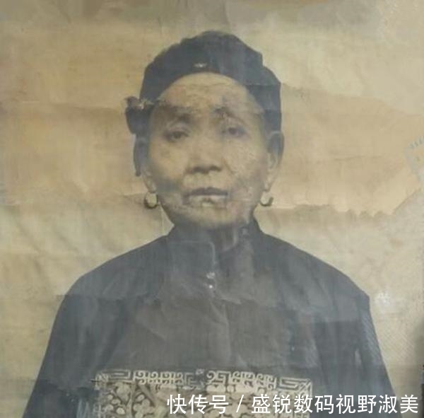 清末诰命夫人老照片,这位诰命夫人耳朵上还戴着耳环。