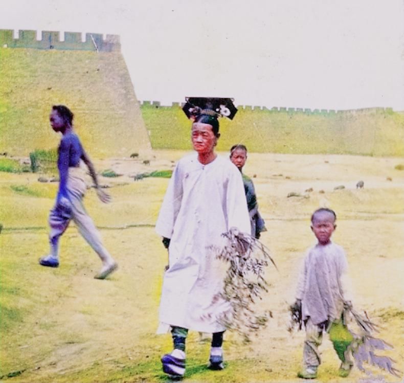 【照片中裹小脚的女子就是张勋三姨太王克勤】关于为什么要让她们裹脚,说法不一。有的说是为了防止女子红杏出墙,因为她们在缠足后行动不便这样就不容易做出出格的事了;有的说是为了满足古代男子病态审美,而且古代的文人还总结出小脚的三美与四美。关于对小脚的审美,最著名的小脚审美著作,是清代方绚的《香莲品藻》,把女性的小脚,从形状、尺寸、装饰、气味等角度来作分类品评。