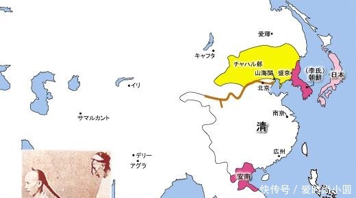 第四幅地图是康熙时期的。康熙在中国疆域方面的贡献是很大的,他消灭了台湾郑氏,平定了"三藩之乱",使得内地完全统一。他出兵黑龙江,将沙俄驱逐,签订了《尼布楚条约》,奠定了东北170年的稳定局面;他三征噶尔丹,将外蒙古纳入到了中国版图;他出兵驱准入藏,将西藏纳入到了中国版图。到康熙末年,清朝的面积已经突破了1000万平方公里。不过,日本画的这个地图是有问题的,例如东北乌苏里江以东土地和库页岛应该划入清朝。