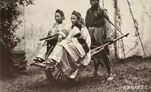 第一张照片是一个女子坐着独轮车,看照片中女子的穿着即可判断出,这是一位富家小姐,因为没有置身于那个环境中,我们对清朝的了解,严谨一点是来自史料,不严谨一点就是来自影视剧,导致我们一直认为清朝的富家小姐出门时坐轿子的。