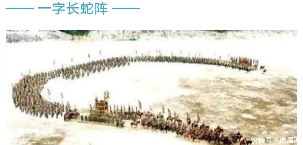 所谓一字长蛇阵顾名思义就是排成一字就像一条蛇一样,这是比较常见的阵法,虽然看着比较简单,但是出招很迅猛攻击也比较强大。假如想破解这个阵法,就攻击两头,让头尾不能全部顾及好。