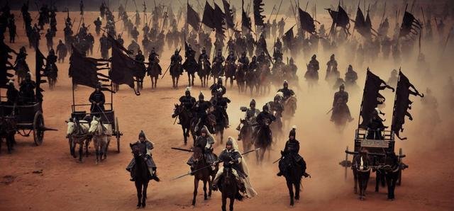 李陵的五千步卒先是被三万匈奴骑兵围于浚稽山,他命士兵结阵,"前行持戟盾,后行持弓弩",这是典型的远近搭配战阵。