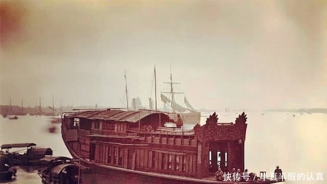 图5:1870年,与现在不同,清朝开妓院是合法的,因此不但大街小巷上有妓院,就连船上都妓院,俗称为"花船",比如图中就是一家金碧辉煌的船上妓院。在当时商贾,买办,外国鸦片商都是花船上的客人。