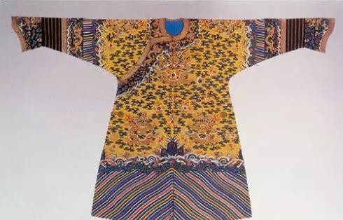 清同治时缂丝明黄地彩云金龙女龙袍