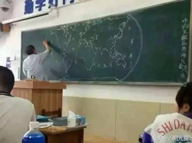 谁的地理老师能随手画出世界地图的举个手!在下只能说佩服佩服啊!