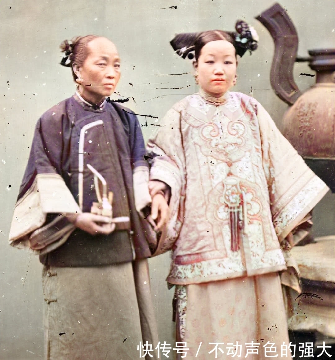 市井生活最令人着迷,小人物才最是可爱。1869年的满族女子彩色老照片。
