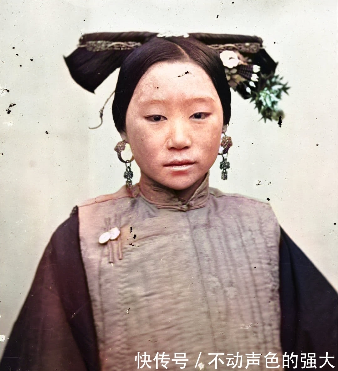 汤姆逊非常的贴近晚清的中国和中国人,及平凡市井影像。拍摄了大量底层人物肖像照,今天放出的这组是1869年的满族女子彩色老照片。