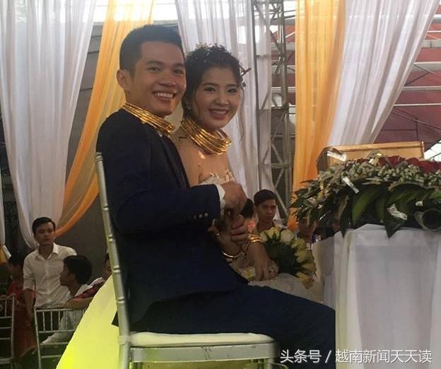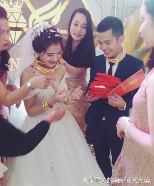 越南西贡,一对新人结婚,新郎新娘佩戴黄金首饰的照片被发到了网络上,立刻引起了7800次点赞与上万条评论。