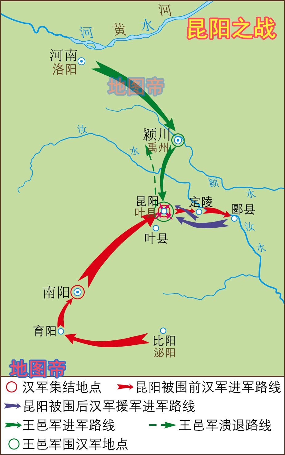 在推翻王莽新朝的过程中,绿林军作为主力军,同王莽的新军进行多次战争,如成昌之战、蓝乡之战等,最著名的是昆阳之战。公元23年,绿林军拥刘玄为帝,恢复汉朝国号。王莽派王寻、王邑率大军四十多万,征召通晓兵法的六十三家为军吏,还有巨人巨毋霸,驱使诸多猛兽虎、豹、犀、象等,进攻绿林军驻守的昆阳(今河南叶县),欲倾全国之力,试图一战而平天下。驻守昆阳的绿林军不到万人,外围援军也只有一两万,敌众我寡的情况下,刘秀率十三骑突出重围调集援军,并带领三千敢死队冲击新军。最终绿林军内外夹击,以少胜多大败新军,聚歼新军主力,使得王莽再无回天之力。刘秀则因此战脱颖而出,赢得巨大的声望,为日后称帝打下坚实的基础。