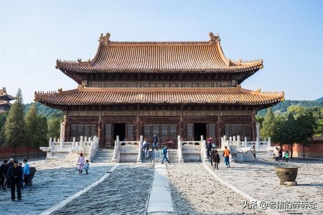 穿过正门,便是隆恩殿,隆恩殿殿里殿外都装饰贴金彩绘,殿内明柱也盘旋金龙,可谓金碧辉煌。