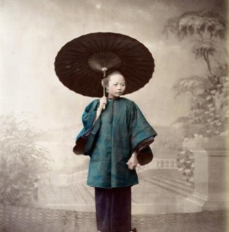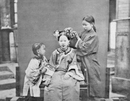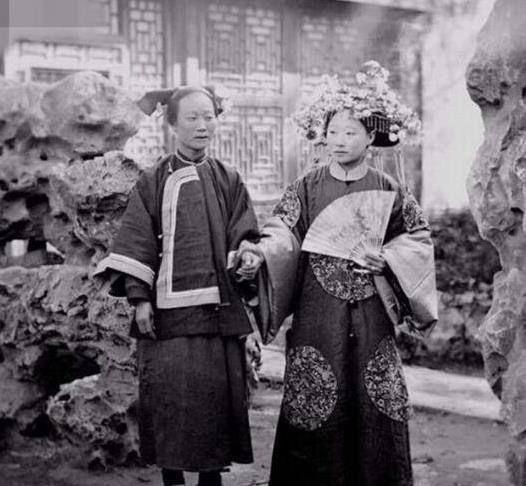 图:标准的清朝女子装扮,显然是一名满族妇女,因为她没有缠足。