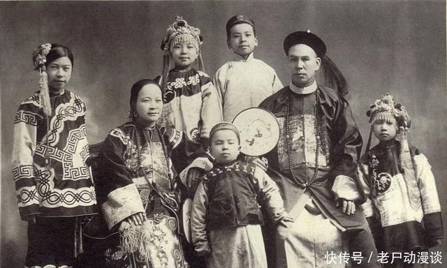 一名官员和他的妻妾们。晚清这样的场景屡见不鲜,追求奢华享受,似乎成为这些晚清官员最重要的一件事。