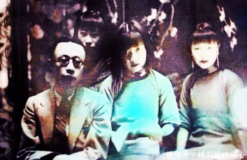 溥仪穿西装与单三位女子合影,三位女子打扮时尚,都剪着短发,看起来清爽干练。