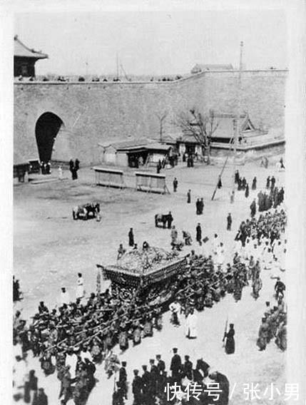 晚清罕见真实老照片:图为光绪皇帝爱新觉罗·载湉的灵柩。光绪是清朝的第11位皇帝,他的生母是慈禧的亲妹妹。1908年11月14日光绪帝暴崩,享年38岁。