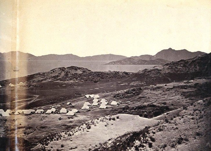 图为1860年3月,集结在港湾的英法舰队和联军营地。参加这一阶段的英军大概有1.5万人,法军7000人。