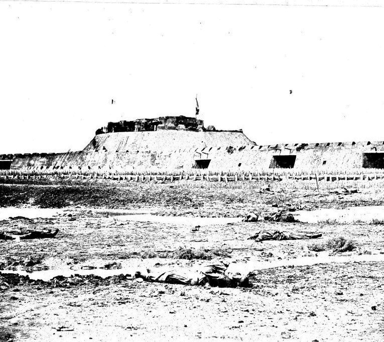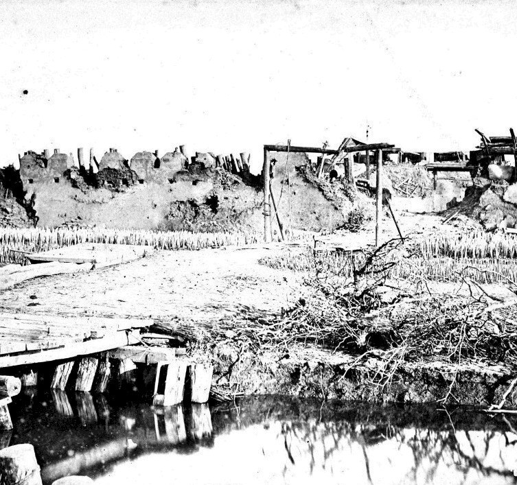 白河的北方炮台的外观。也是英国和法国军队的进入口。