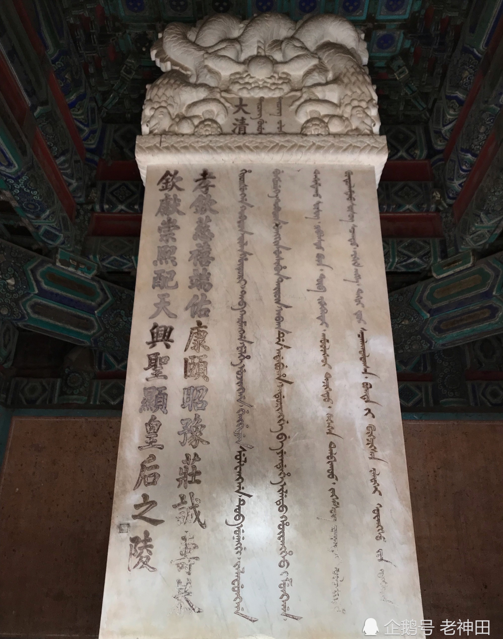 慈禧太后的谥号碑,上面有隆裕太后给慈禧封的谥号,共22个字