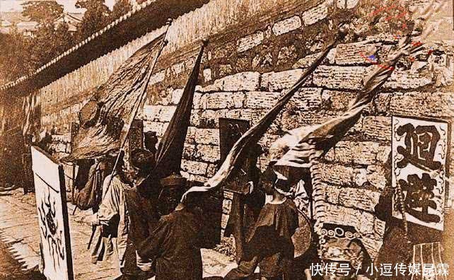 图为赤脚仪仗队,这是云南巡抚的仪仗队正在通过,在这仪仗队中有几个孩童,他们都是临时找来,充当仪仗队队员的街通,右下角扭头望着镜头的小男孩十分的好奇。